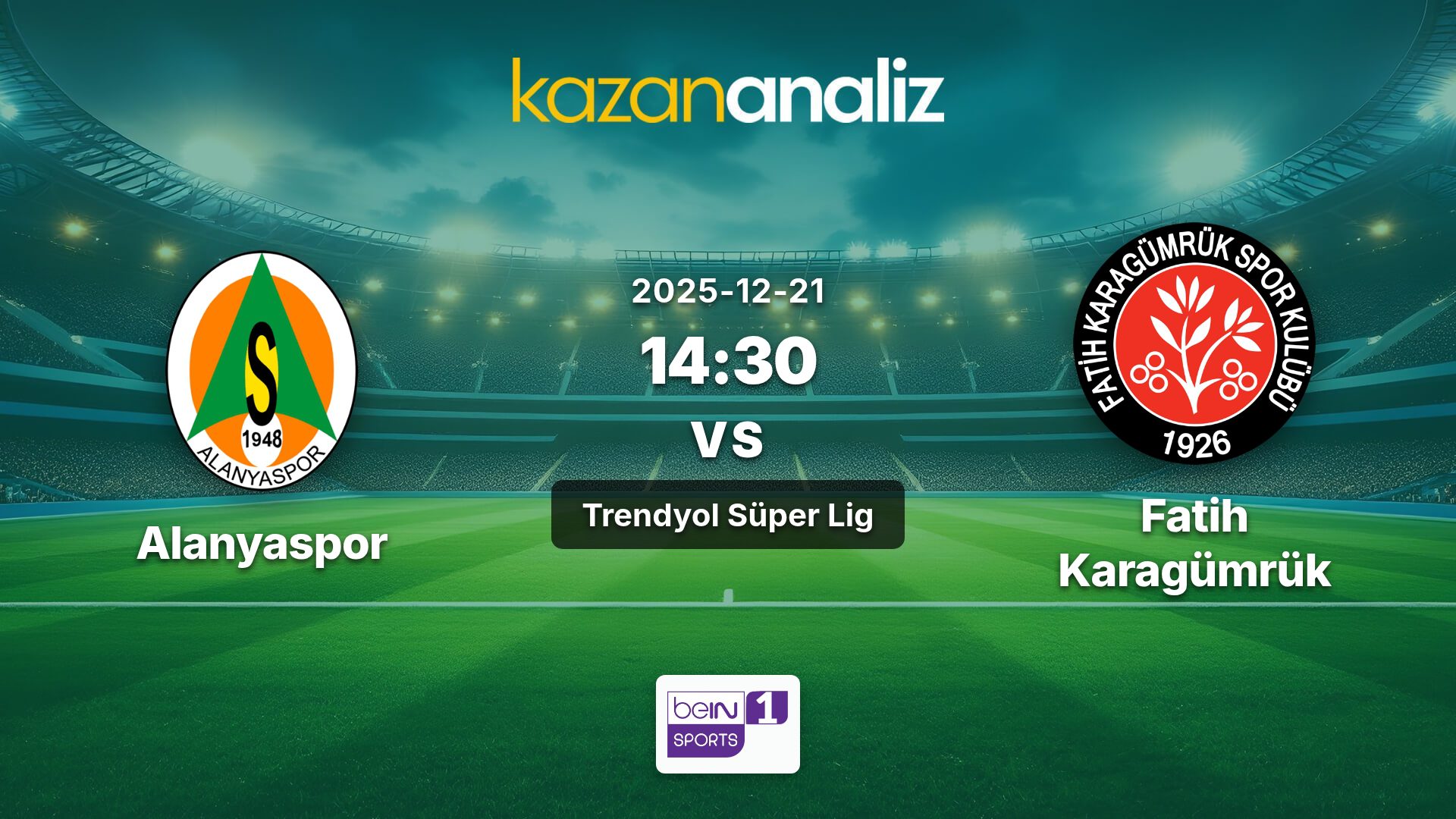 Alanyaspor-Fatih Karagümrük maçı, 21.12.2025 Pazar günü oynanacak.