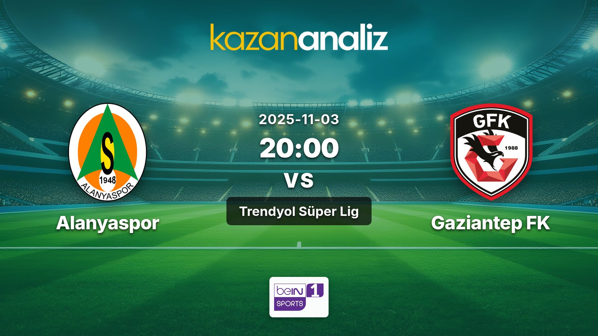 Alanyaspor ile Gaziantep FK arasındaki Trendyol Süper Lig maçı, Bein Sports 1 kanalından canlı izlenebilecek.