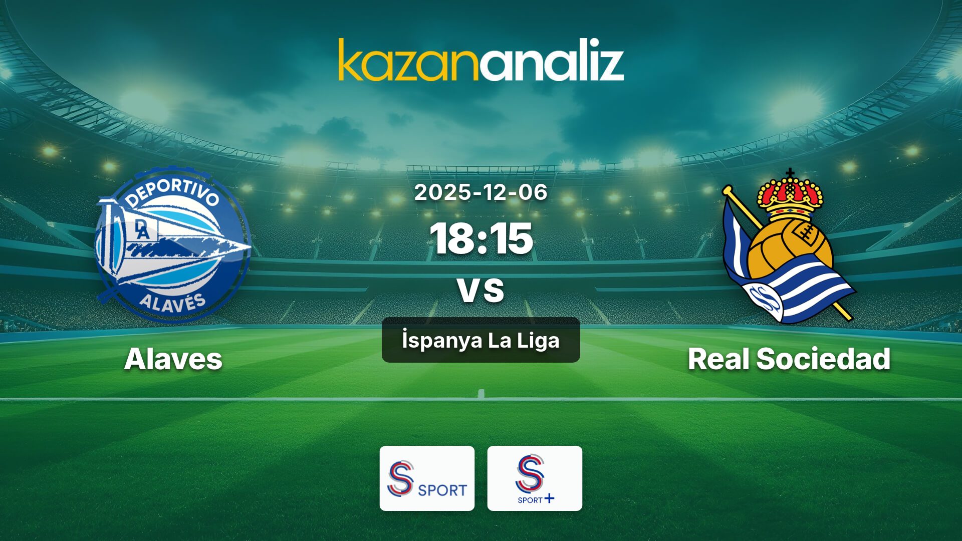 Alaves ile Real Sociedad arasındaki İspanya La Liga maçı, S Sport ve S Sport Plus kanallarından canlı izlenebilecek.
