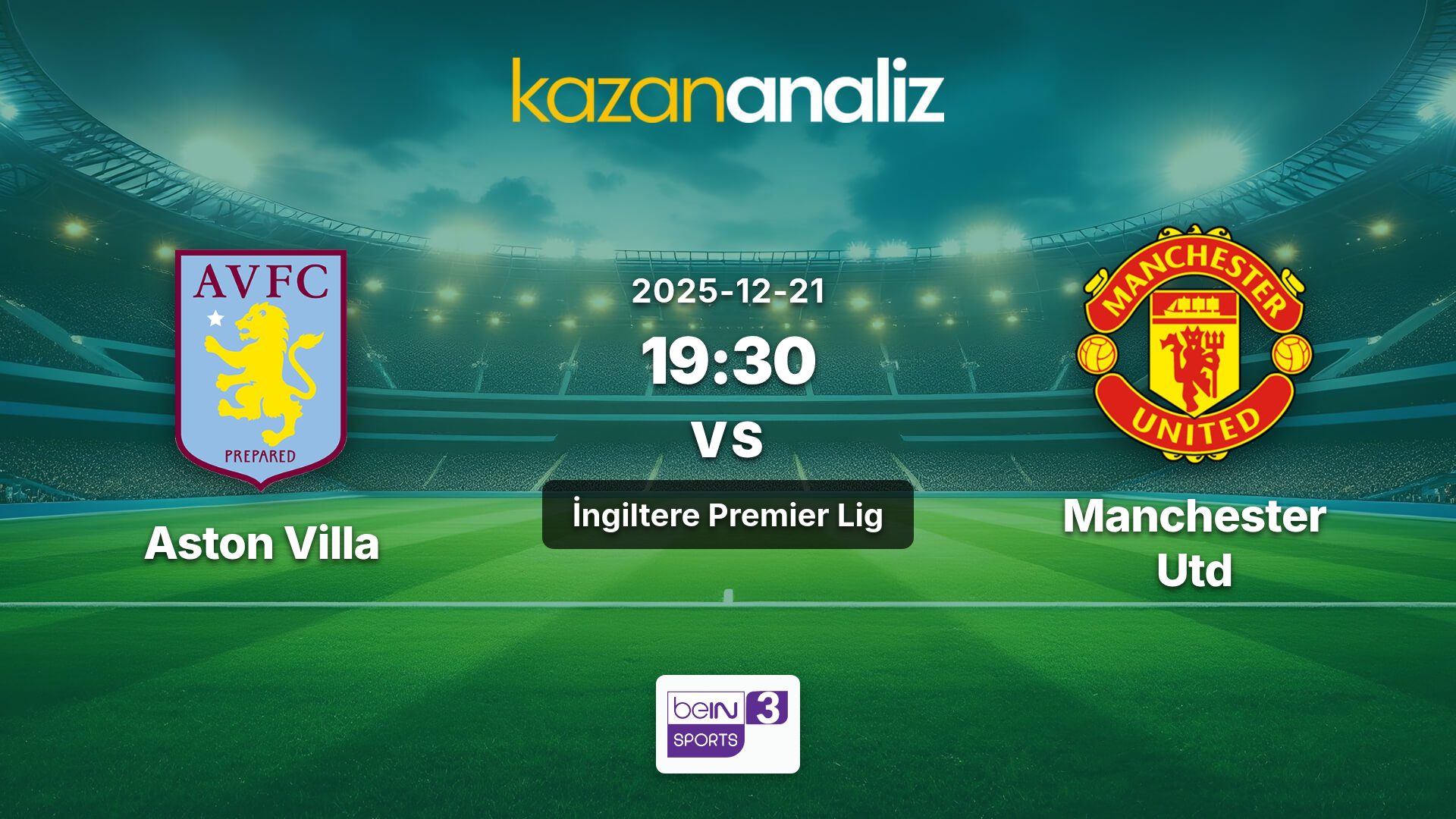 Aston Villa ile Manchester United arasındaki Premier Lig maçı, Bein Sports 3 kanalından canlı olarak yayınlanacak. Futbolseverler, bu heyecanlı karşılaşmayı izlemek için yayın akışı sağlayan platformlar üzerinden de Bein Sports 3 yayınını takip edebilirler.