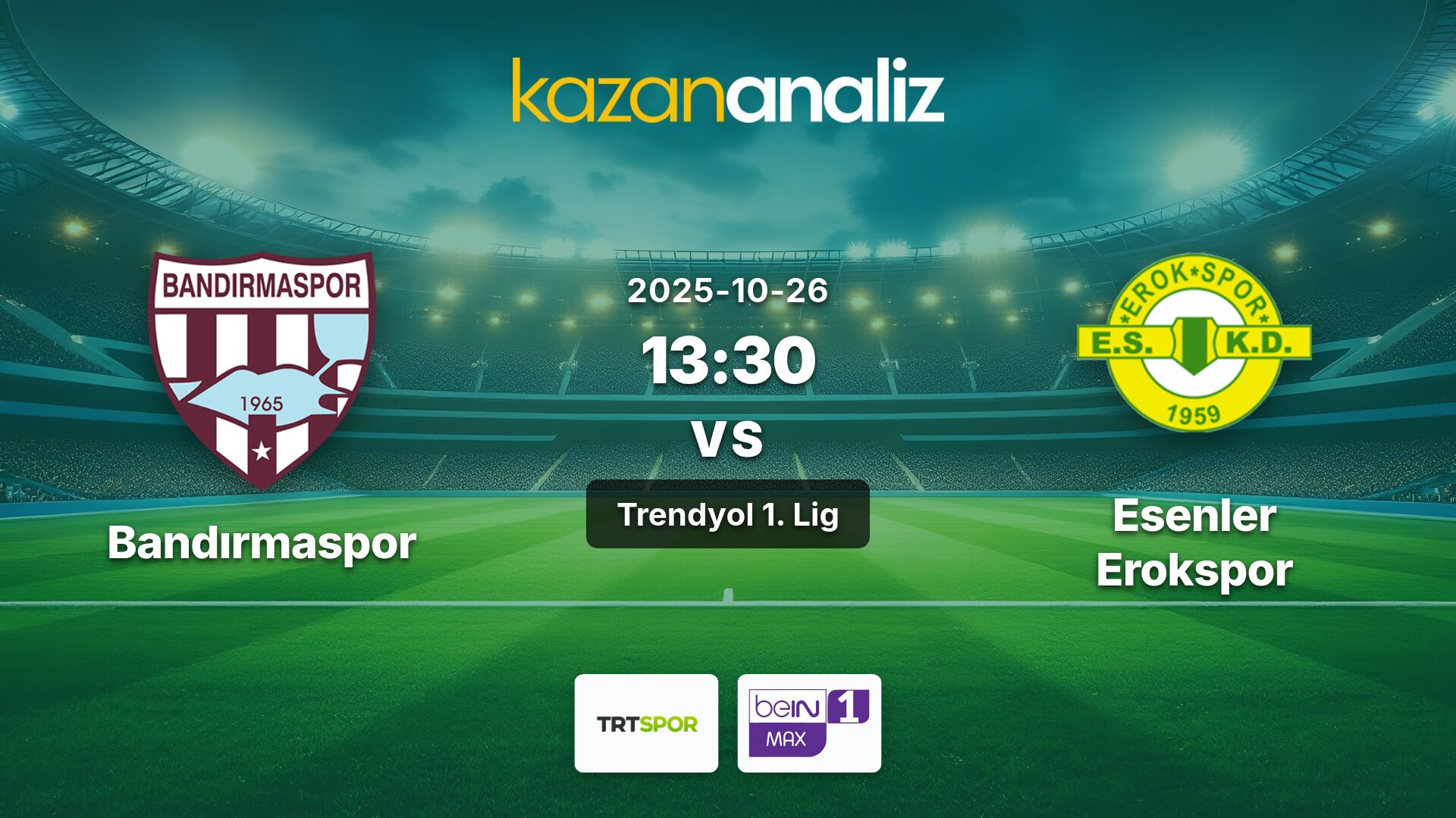 Bandırmaspor ile Esenler Erokspor arasındaki Trendyol 1. Lig maçı, TRT Spor ve Bein Sports Max 1 kanallarından canlı izlenebilecek.