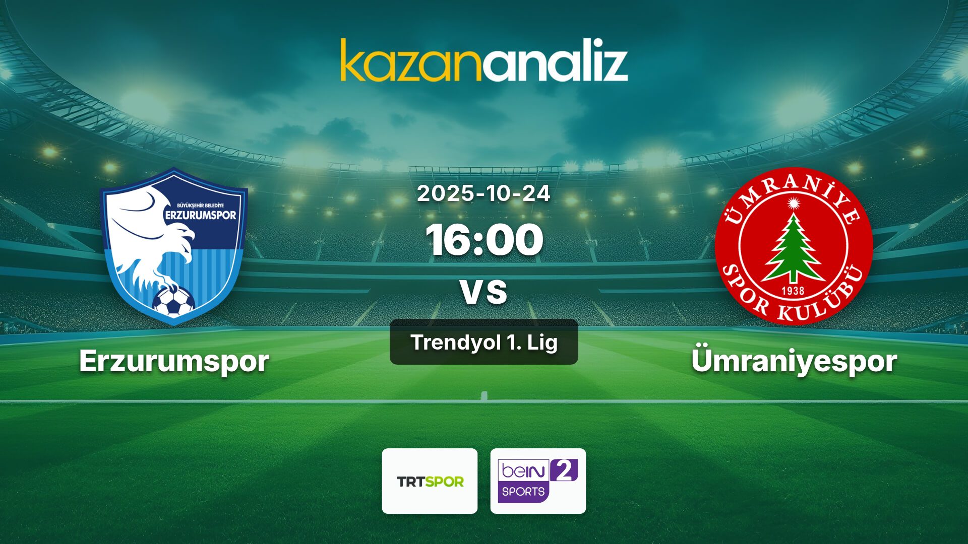 Erzurumspor ile Ümraniyespor arasındaki Trendyol 1. Lig maçı, TRT Spor ve Bein Sports 2 kanallarından canlı izlenebilecek.