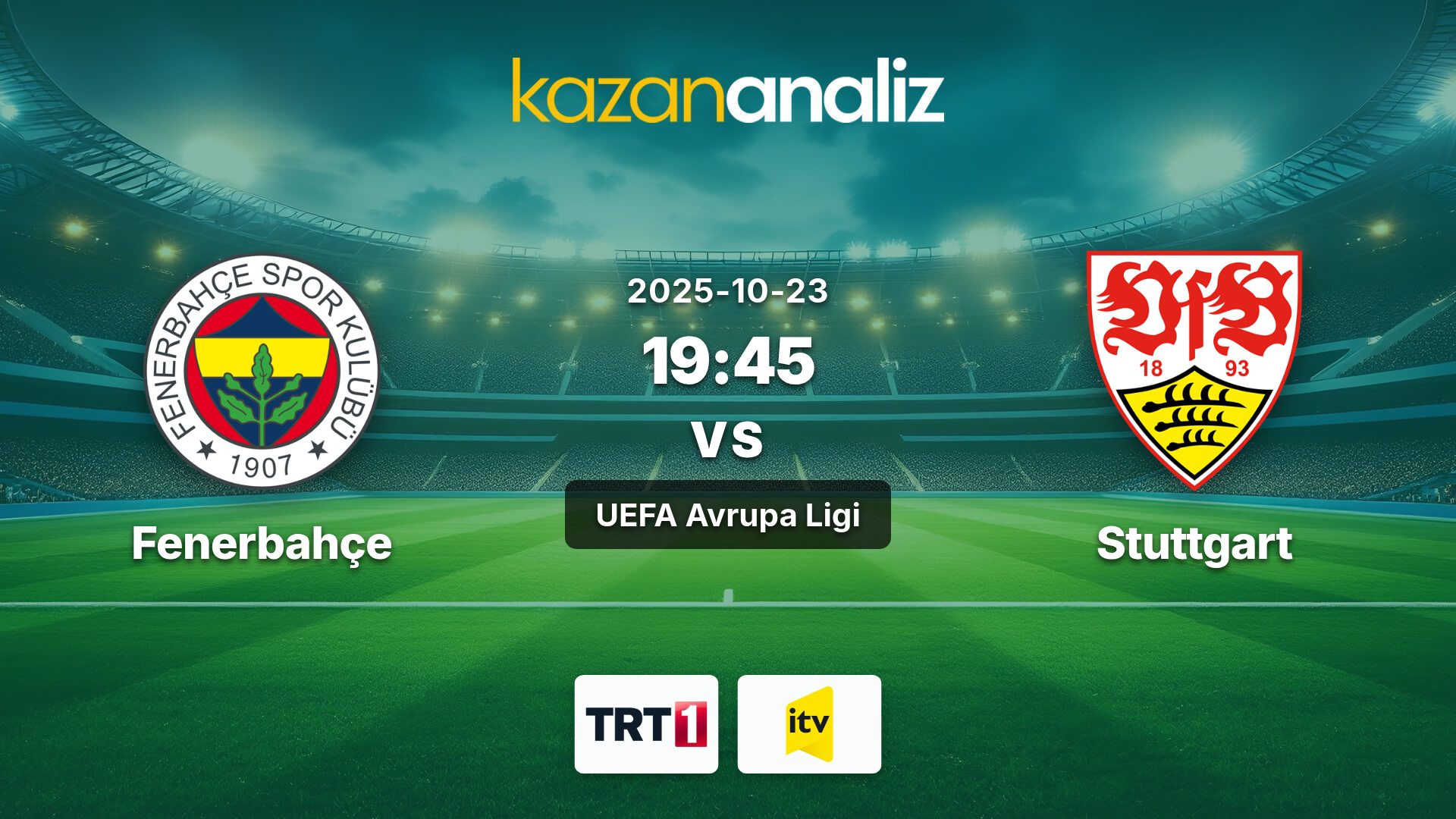 Fenerbahçe ile Stuttgart arasındaki UEFA Avrupa Ligi maçı, TRT 1 ve İçtimai TV kanallarından canlı izlenebilecek.