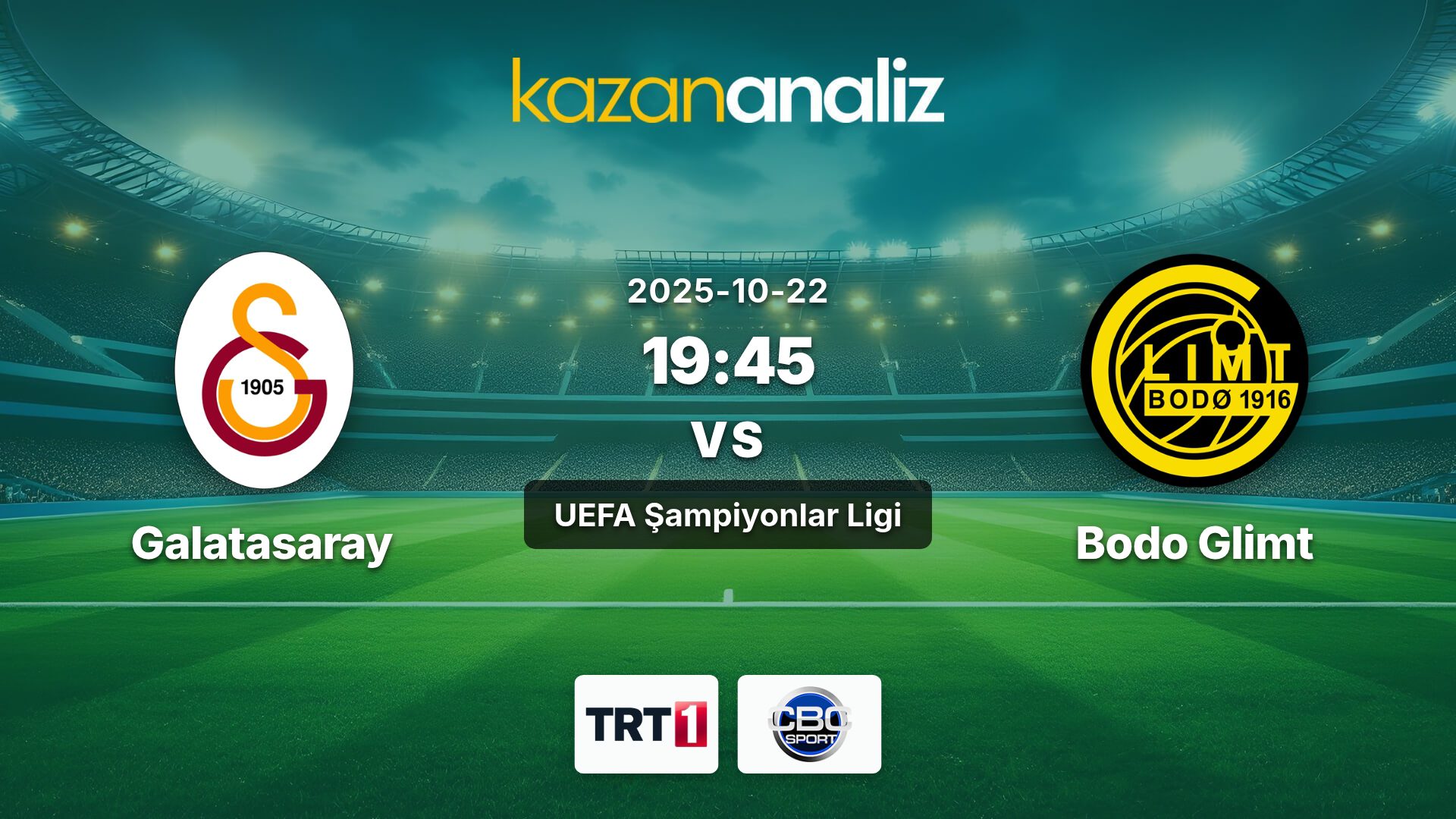 Galatasaray ile Bodo Glimt arasındaki UEFA Şampiyonlar Ligi maçı, TRT 1 ve CBC Sport kanallarından canlı izlenebilecek.