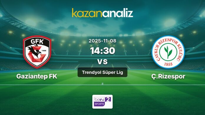 Gaziantep FK-Çaykur Rizespor Maçı, 08.11.2025 Cumartesi günü oynanacak.
