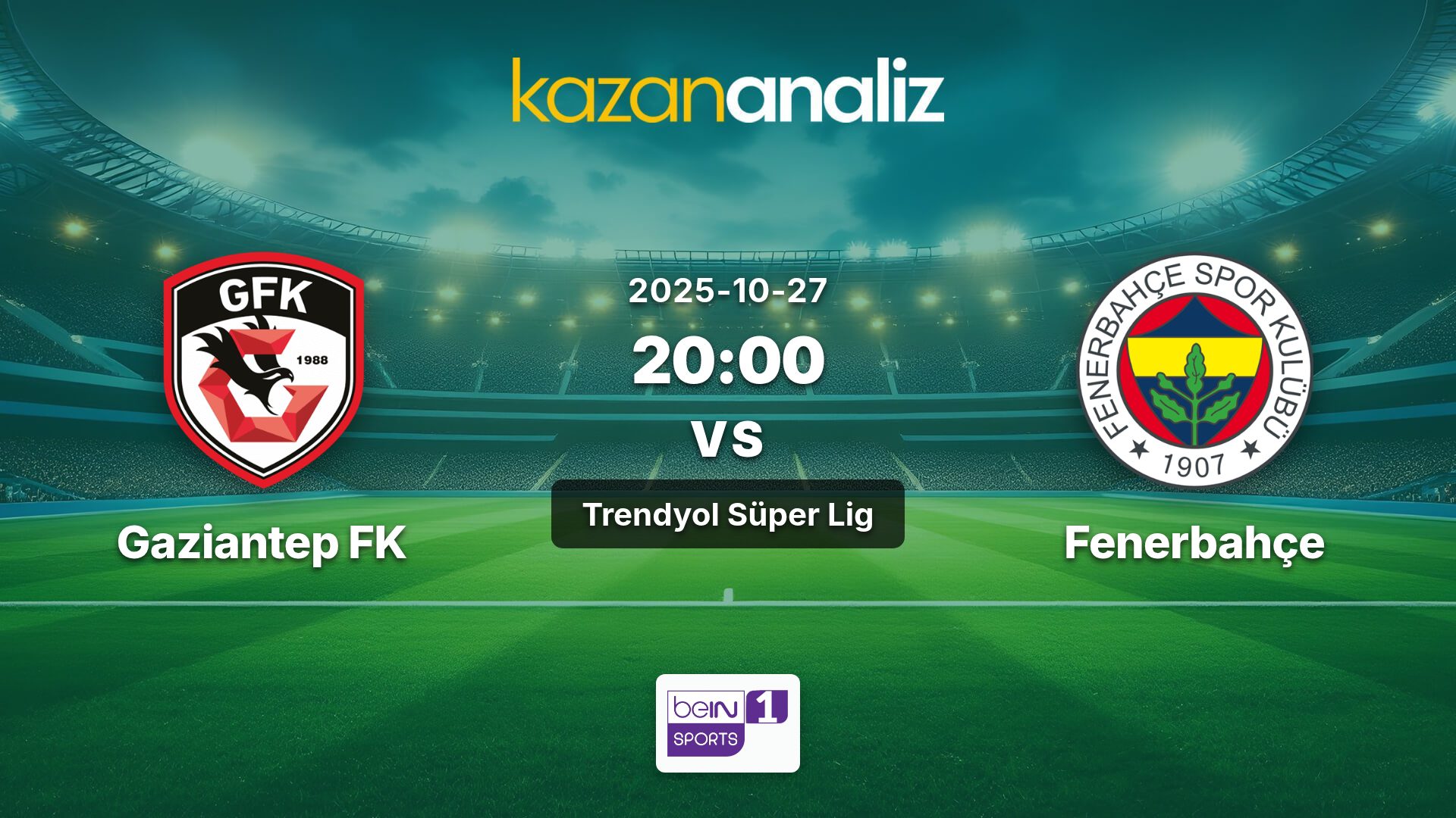 Gaziantep FK ile Fenerbahçe arasındaki Trendyol Süper Lig maçı, Bein Sports 1 kanalından canlı izlenebilecek.