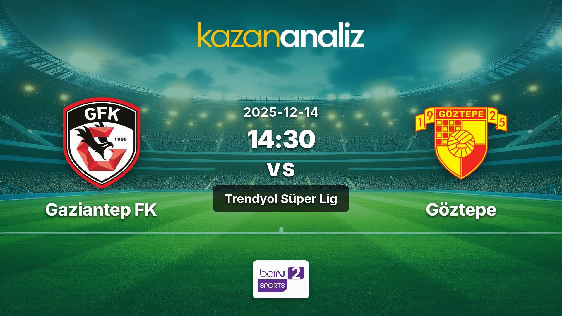 Gaziantep FK-Göztepe maçı, 14.12.2025 Pazar günü oynanacak. Hafta sonunun bu önemli spor etkinliği, taraftarlara heyecan dolu bir Pazar günü yaşatacak.
