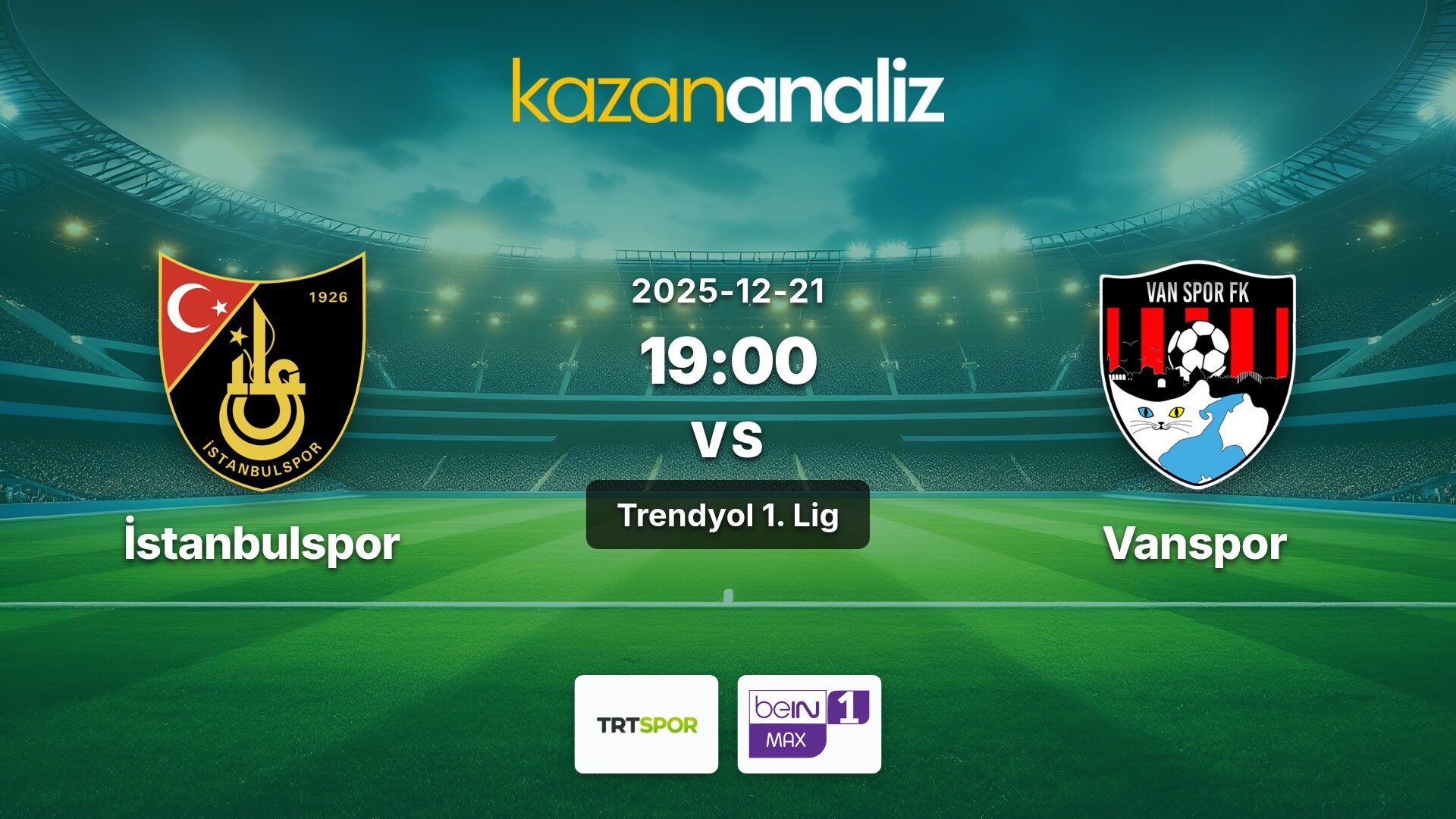 İstanbulspor-Vanspor maçı, 21.12.2025 Pazar günü oynanacak. Hafta sonunun bu önemli spor etkinliği, futbolseverler için heyecan dolu bir Pazar akşamı vadediyor.