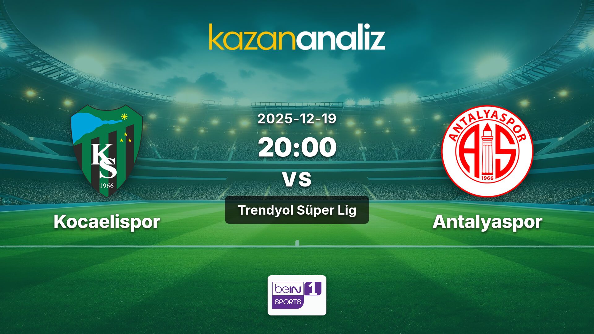 Kocaelispor-Antalyaspor maçı, 19.12.2025 Cuma günü oynanacak. Haftanın son iş günü, futbolseverlere heyecan dolu bir akşam vaat ediyor.