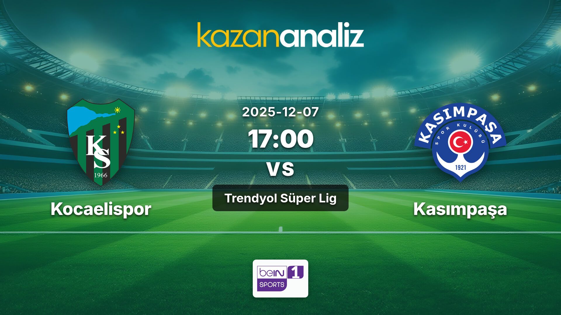 Kocaelispor ile Kasımpaşa arasındaki Trendyol Süper Lig maçı, Bein Sports 1 kanalından canlı izlenebilecek.