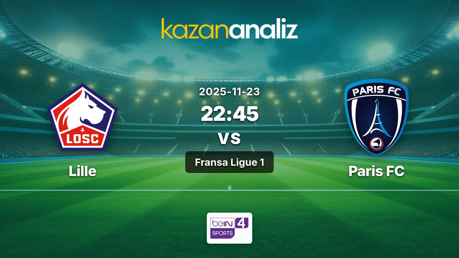 Lille-Paris FC Maçı, 23.11.2025 Pazar günü oynanacak.