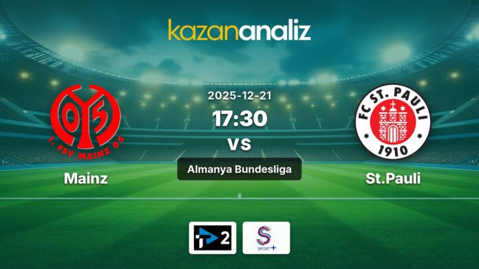Mainz-St.Pauli maçı, 21.12.2025 Pazar günü oynanacak. Hafta sonunun bu önemli spor etkinliği, futbolseverler için keyifli bir Pazar akşamı vadediyor.