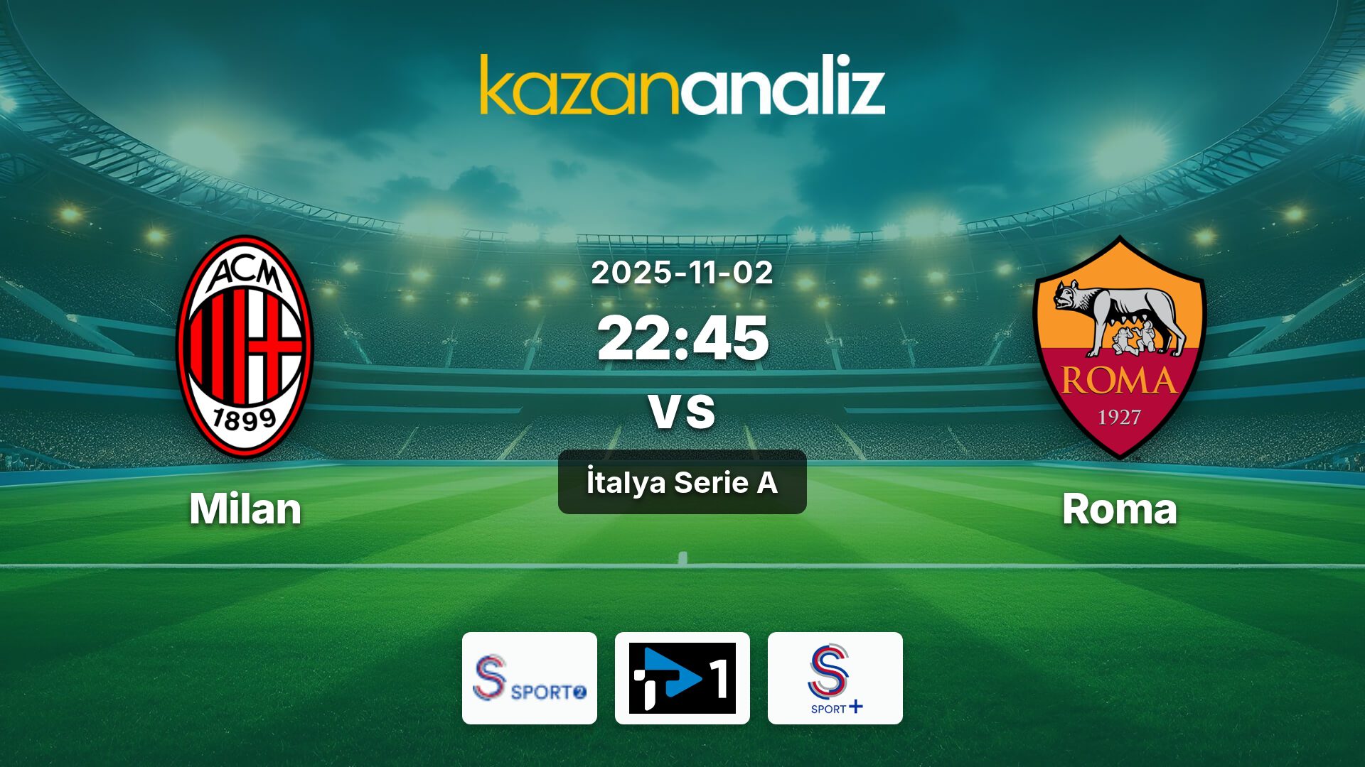Milan-Roma Maçı, 02.11.2025 Pazar günü oynanacak.