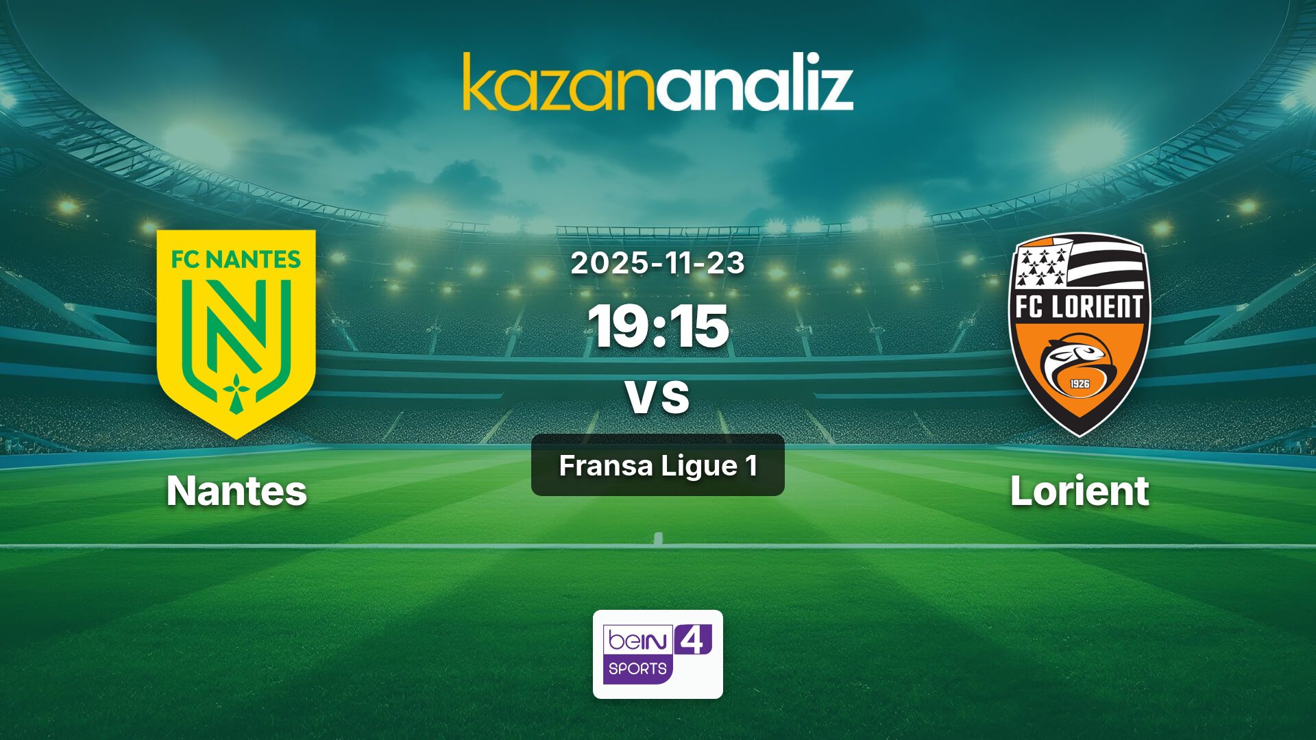 Nantes-Lorient Maçı, 23.11.2025 Pazar günü oynanacak.
