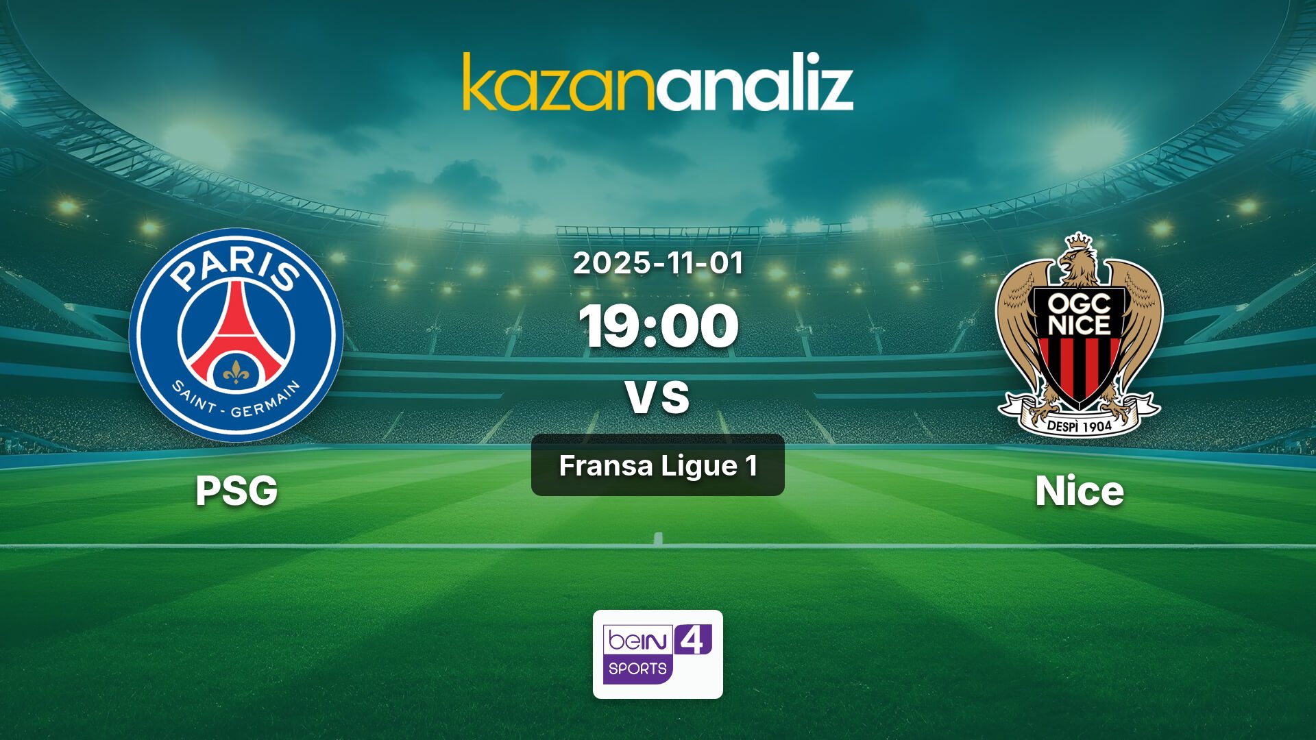 PSG-Nice Maçı, 01.11.2025 Cumartesi günü oynanacak.