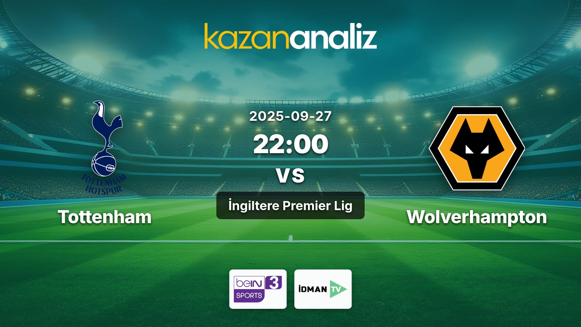 Tottenham-Wolverhampton Maçı, 27.09.2025 Cumartesi günü oynanacak.