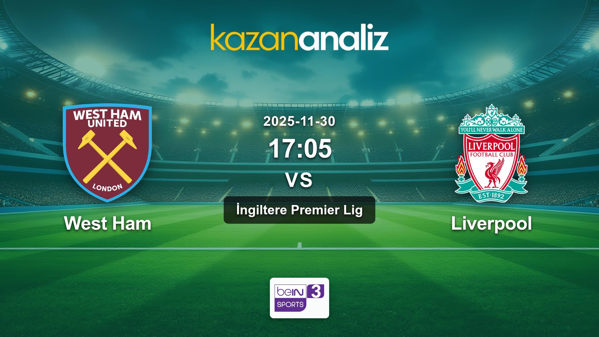 West Ham-Liverpool Maçı, 30.11.2025 Pazar günü oynanacak.